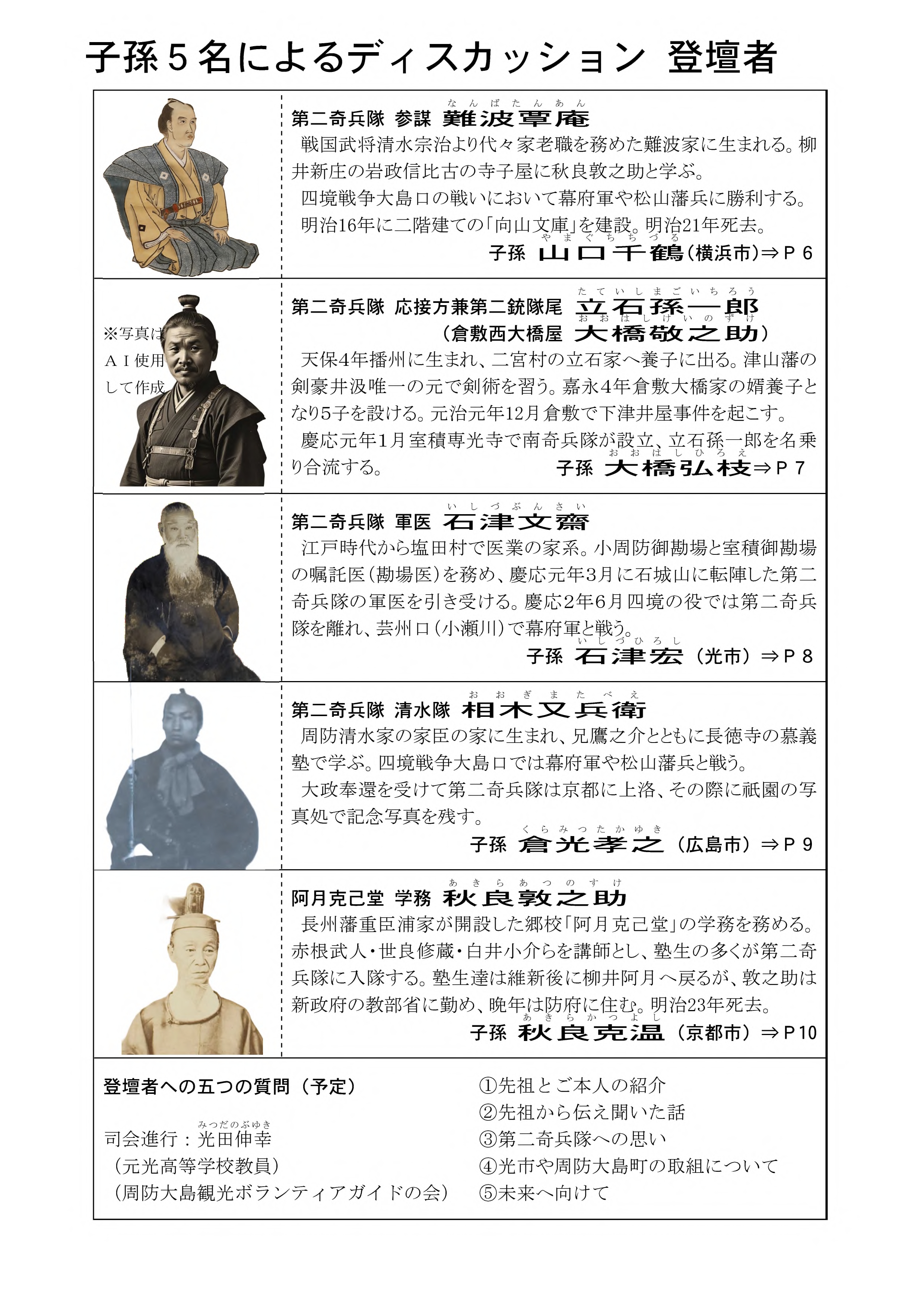1.山口千鶴さん(第二奇兵隊参謀:難波覃庵の子孫)