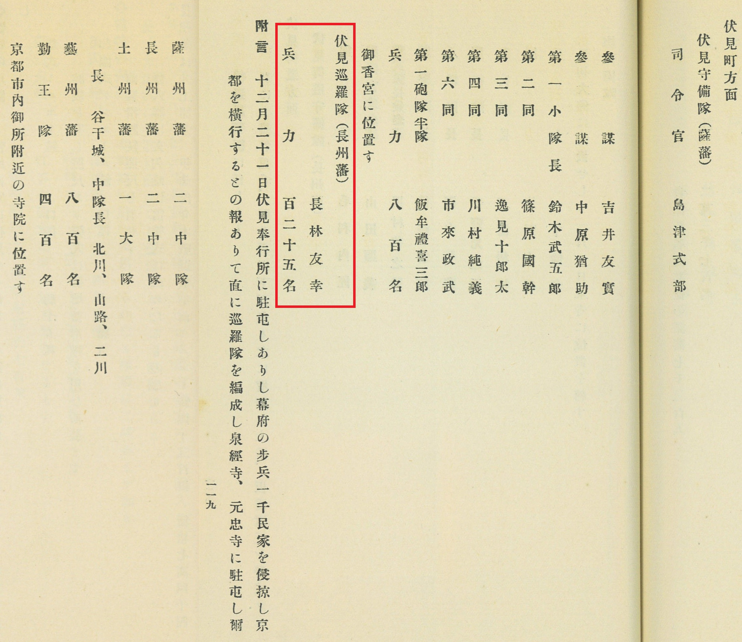 林友幸(林半七:第二奇兵隊隊長)125名は伏見巡邏隊として泉経寺・元忠寺に駐屯する。